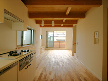 一才のお子様がいるお嬢様家族との二世帯の計画です。家族がほどよくふれあい、孫がのびのびと過ごせる住まいを望まれました。 場所は2階建て住宅が建ち並び、隣家との距離もそれほどなく、立地条件から建て替えは不可能でした。既存の形を残しつつリフォームによって、自然光と風をいかにうまく取り込むかがポイントとなりました。
