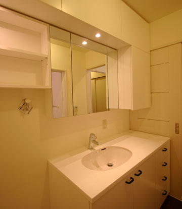 以前の住まいは、部屋が小割にされた間取りであったため、採光と通風が困難でした。また、リビングが1階の中央にあったため、外の様子がわからず、いつも電気を付けての暮らしでした。リフォームにあたって、家の中を風が通り抜け、自然光を感じながら家族がゆったりとくつろげる場を設けることを考えました。条件の良い2階にリビングを移し、LDKをワンルームとして南側のデッキと連続させることで、明るく開放的なくつろぎ空間が実現しました。1階は二つの個室間に水廻りを設け、動線を短くしてコンパクトにまとめました。浴室は今後のメンテナンス性を考慮してユニットバスとしています。